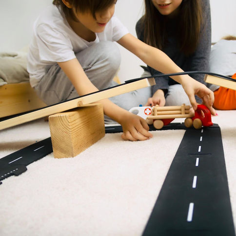 Metrópolis de ToddleRoad es un conjunto de piezas de silicona flexible que permite crear recorridos amplios, continuos y completamente adaptados al juego libre de la infancia. Cada tramo se conecta con facilidad, invitando a construir ciudades, caminos, cruces y trayectos sin necesidad de encajar con fuerza ni seguir un modelo fijo.